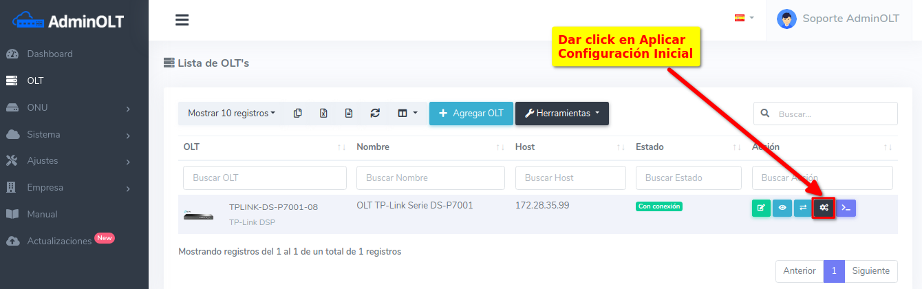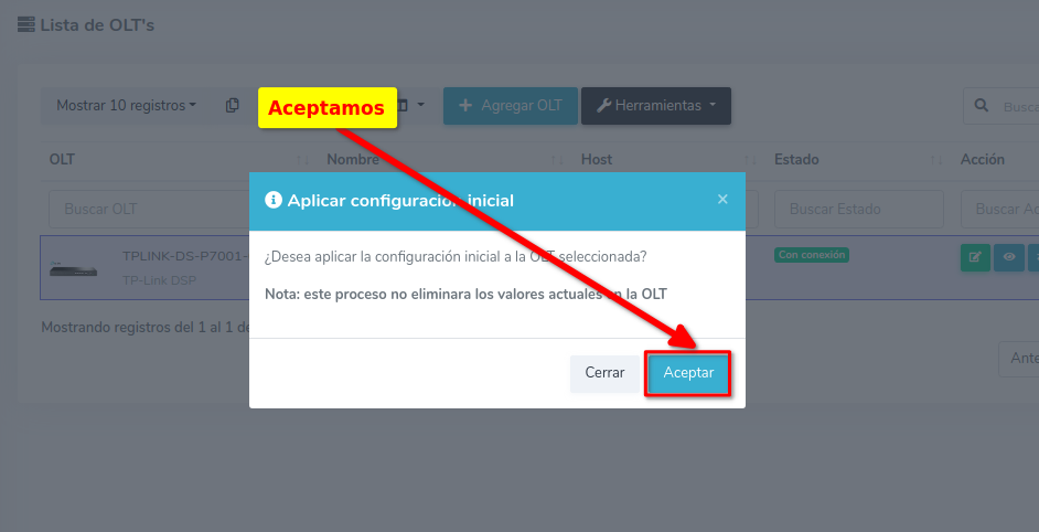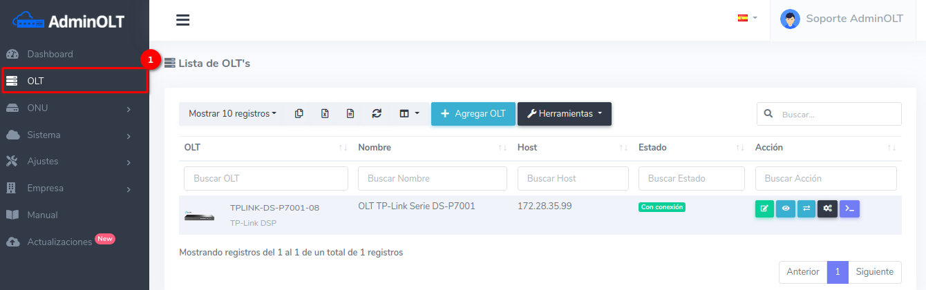 1 Ir a Lista de OLT