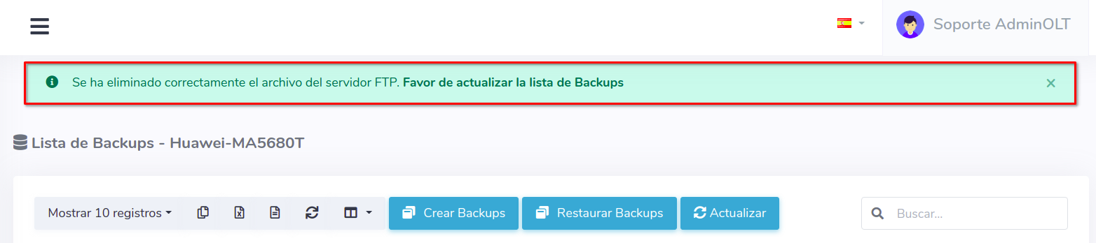 Eliminar respaldo desde AdminOLT