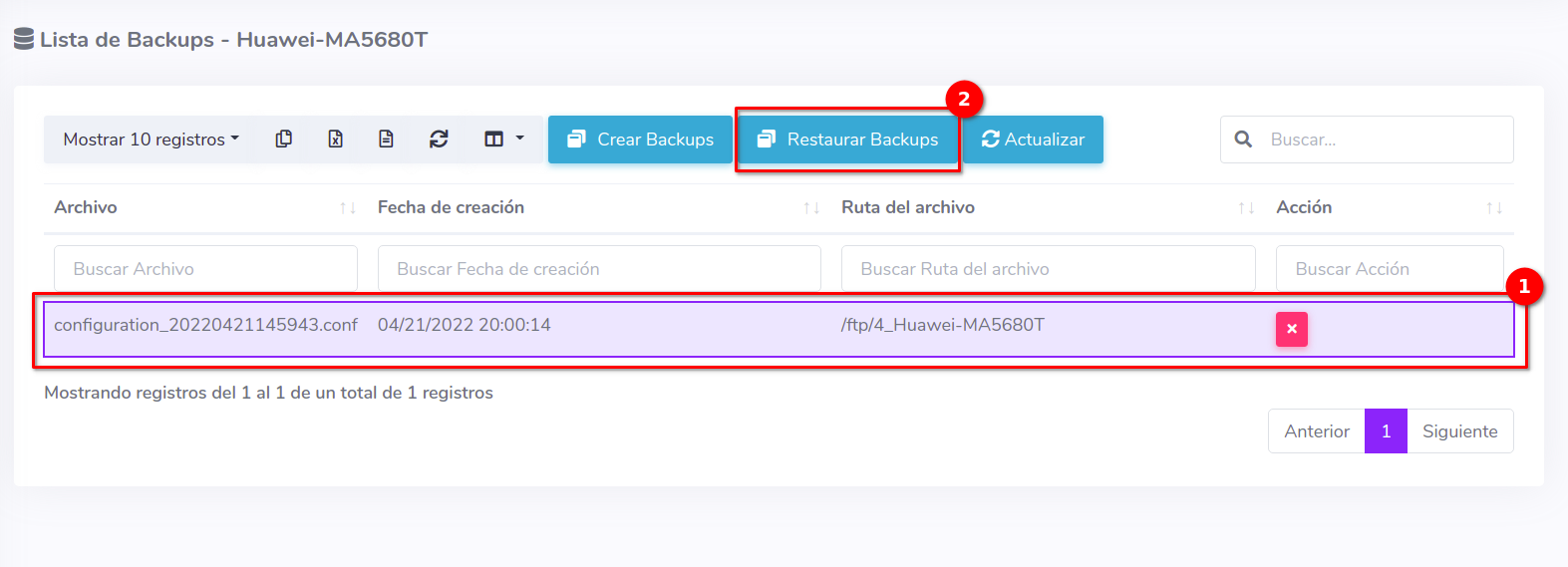 Restaurar respaldo en la OLT