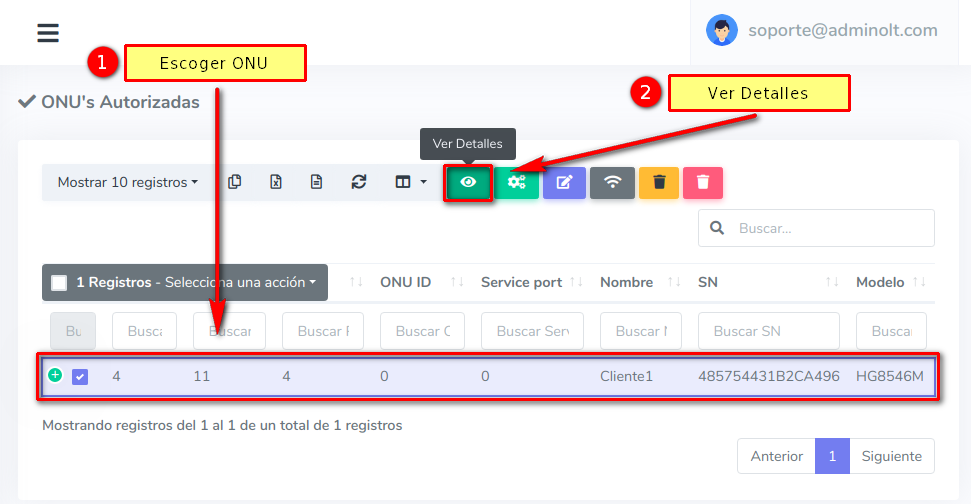 En este paso es importante que coloque la ONU en Puerto correcto ya que si no se hace la ONU seguira saliendo como Offline