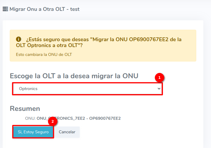 2Seleccionamos la OLT a la que queremos migrar la ONU