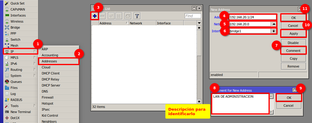 Vamos a crear un bridge para poder asignar una IP de la red default de administración de la OLT y también poder asignar una IP para cuando cambiemos la red default.