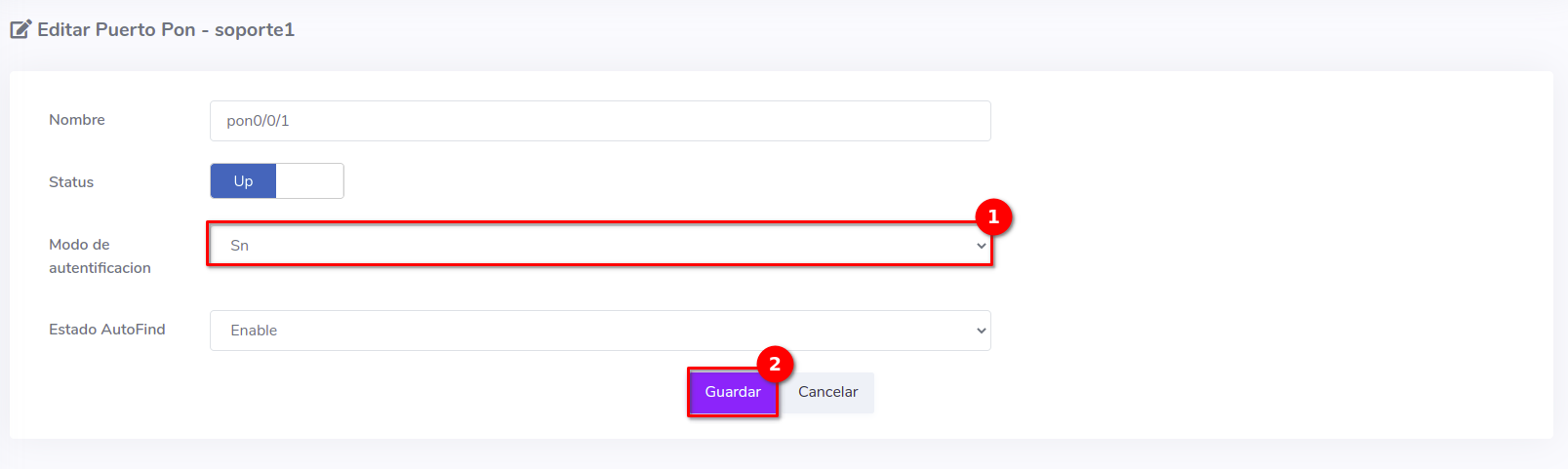 La opción Activar Autofind activa que en todos los puertos sea posible visualizar las onus que están listas para autorizarlas en la OLT. Si no se activa, puede que la OLT no le muestre la información de la ONUs para autorizar en AdminOLT, en la Interfaz de la OLT y al ingresar a la OLT por el protocolo Telnet.