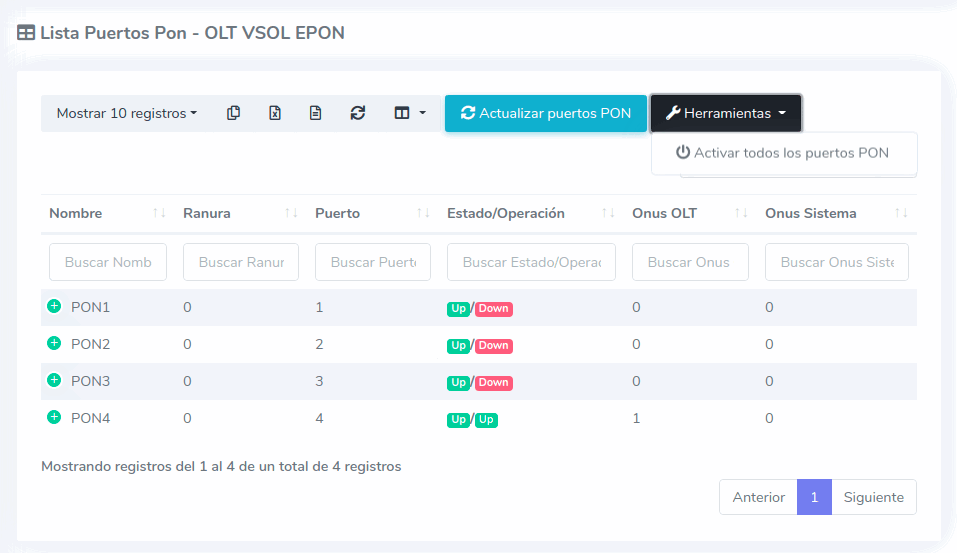 1 Ir a Lista de Puertos PON de nuestra OLT
