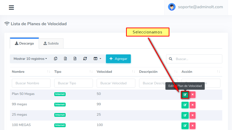 ¿Como edito un Plan de Velocidad de Bajada?