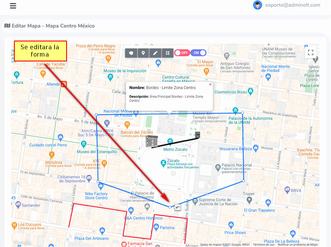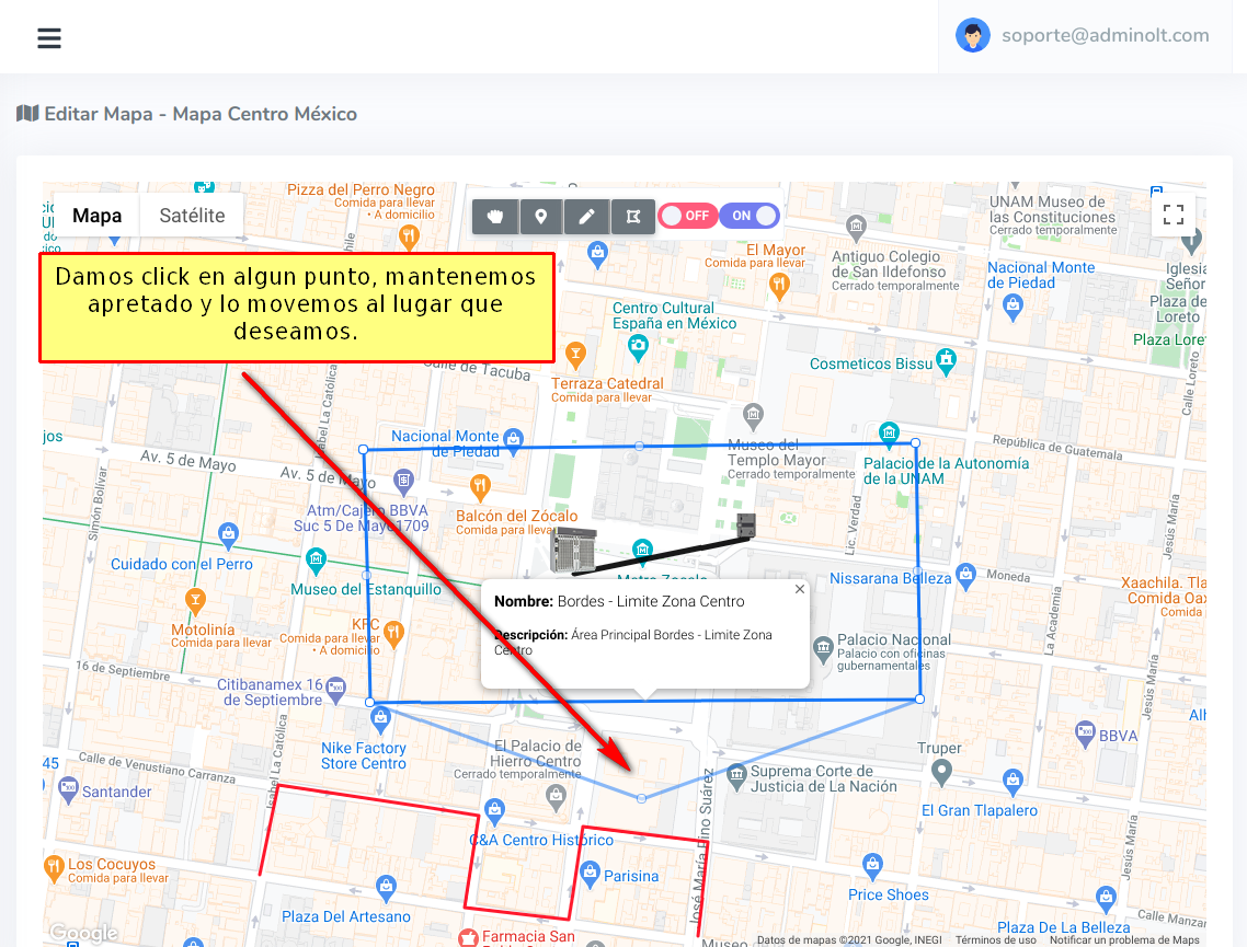 Damos click en la opción Manipular Mapa para terminar de dibujar la forma.