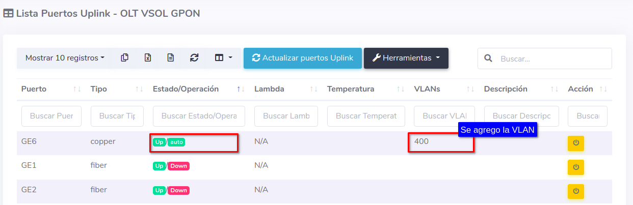 Habilitar puerto UPlink Vsol GPON
