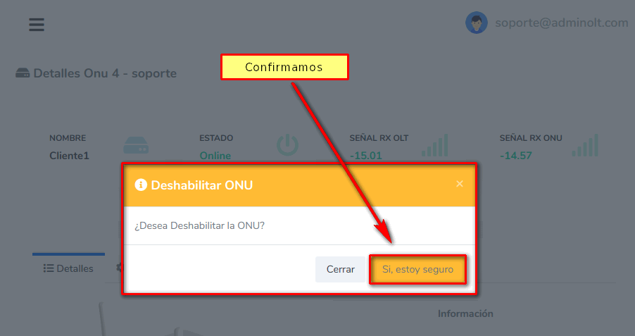 4 Confirmamos la acción de Deshabilitar ONU