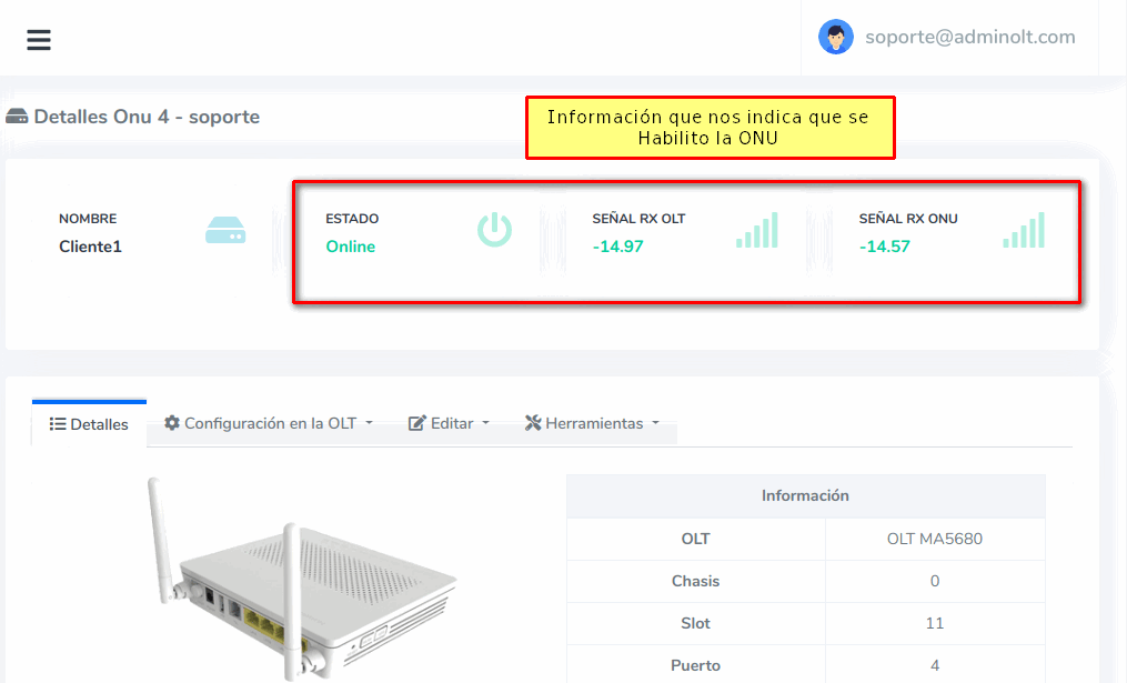 Habilitar ONU