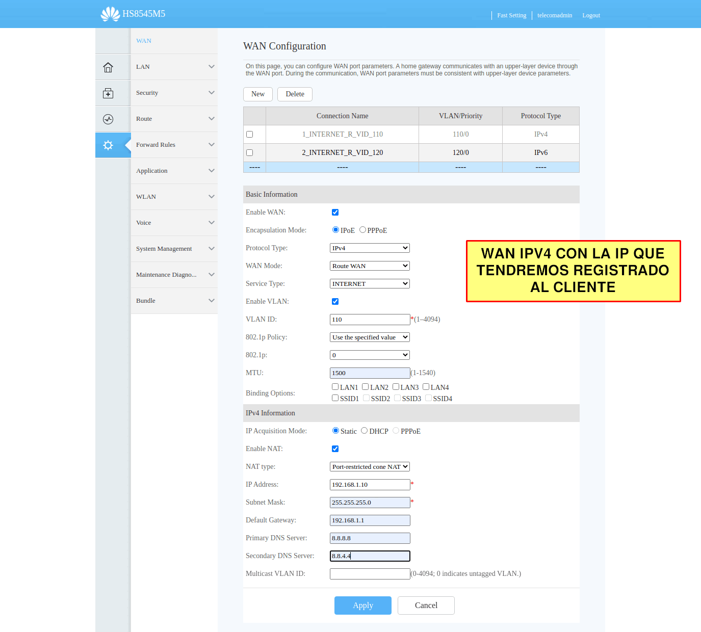 Para este paso debemos crear la WAN IPV4 final del cliente con la que lo tendremos registrado.